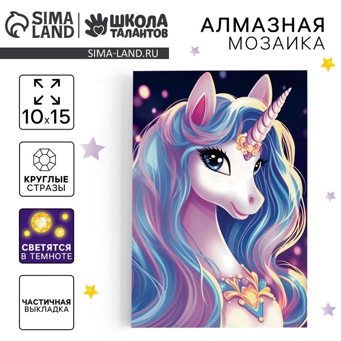 Алмазная мозаика для детей со светящимися стразами «Сказочный единорог», 10 х 15 см, набор для творчества