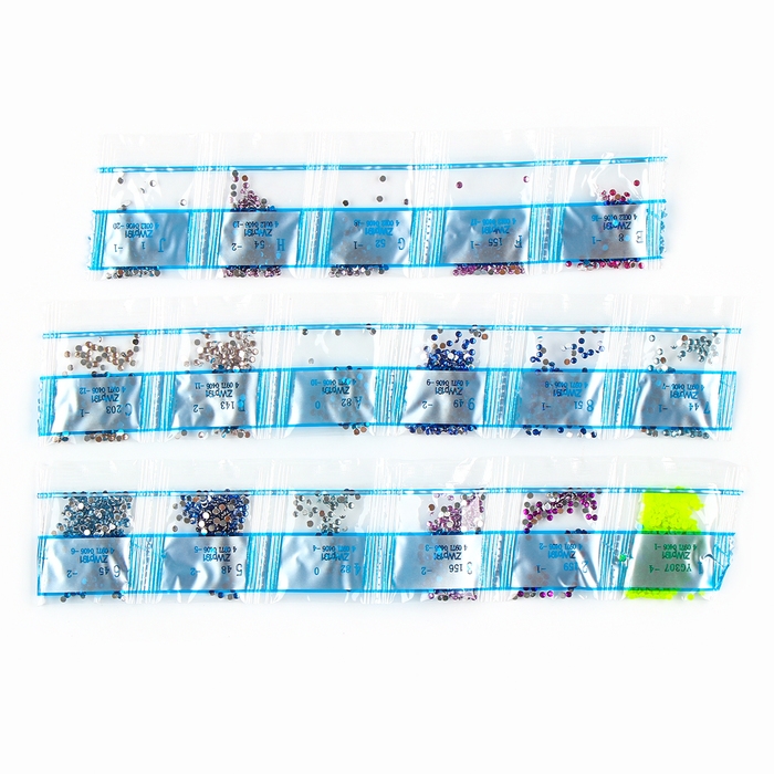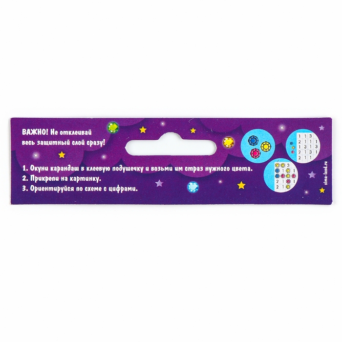 - Разложите кристаллики с помощью карандаша по указанной схеме, заполнив полотно. На картине уже обозначены необходимые оттенки. Холст с клеевым покрытием будет надёжно удерживать стразы.