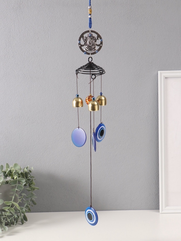 Музыка ветра металл от сглаза "Ганеша в круге" 3 колокольчика h=56см