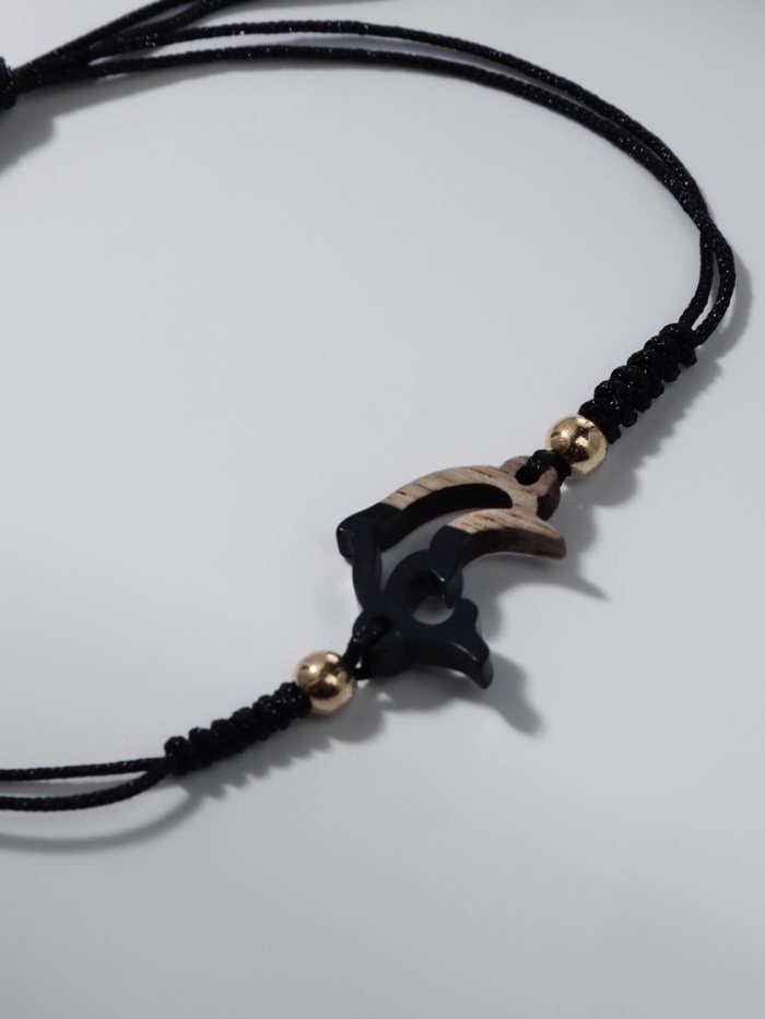 Браслет ассорти на нити «Дельфинчик» на нити, цвет чёрный в золоте