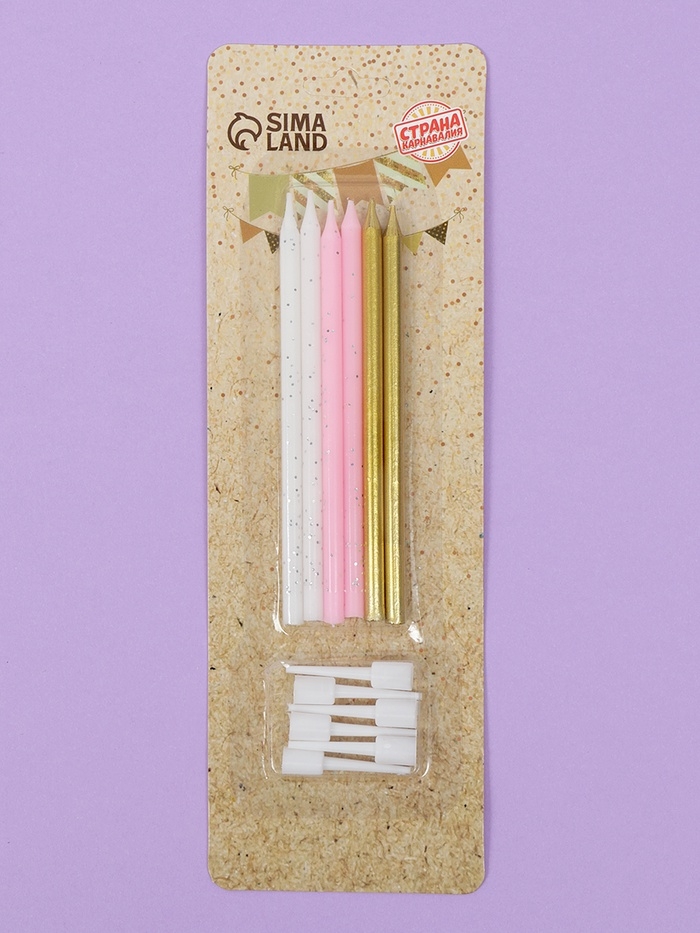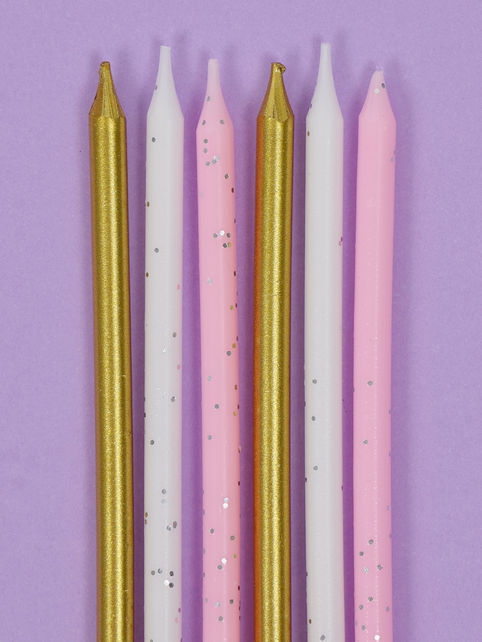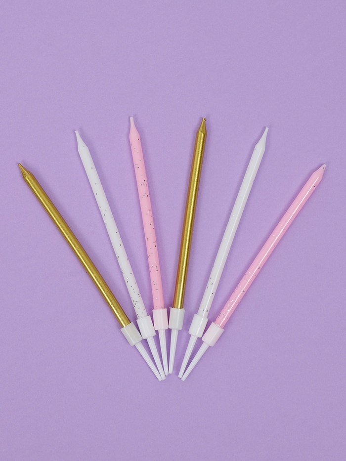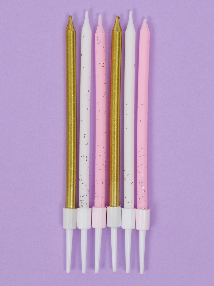 Свечи для торта "Блестящая вечеринка", 6 шт, белый, розовый, золотой