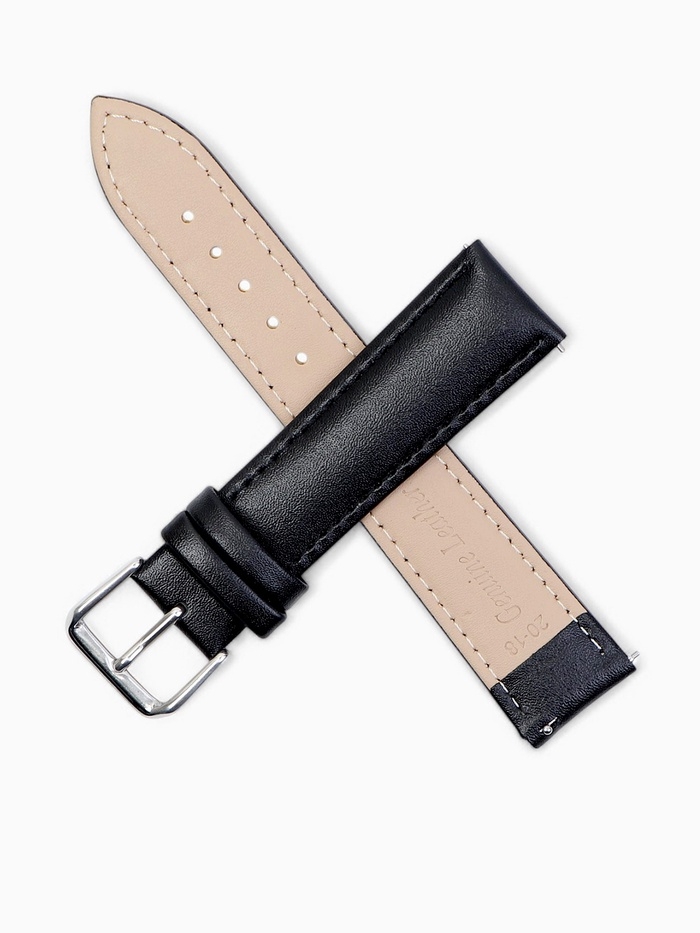 Ремешок для часов кожаный с быстросъемными шпильками, 20 мм, l-20 см, черный