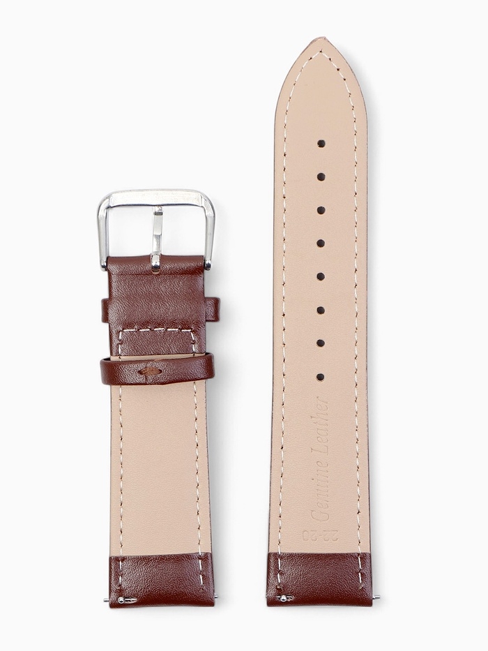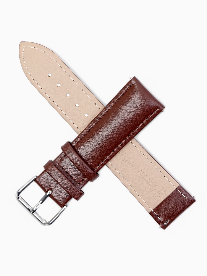Ремешок для часов кожаный с быстросъемными шпильками, 22 мм, l-20 см, коричневый