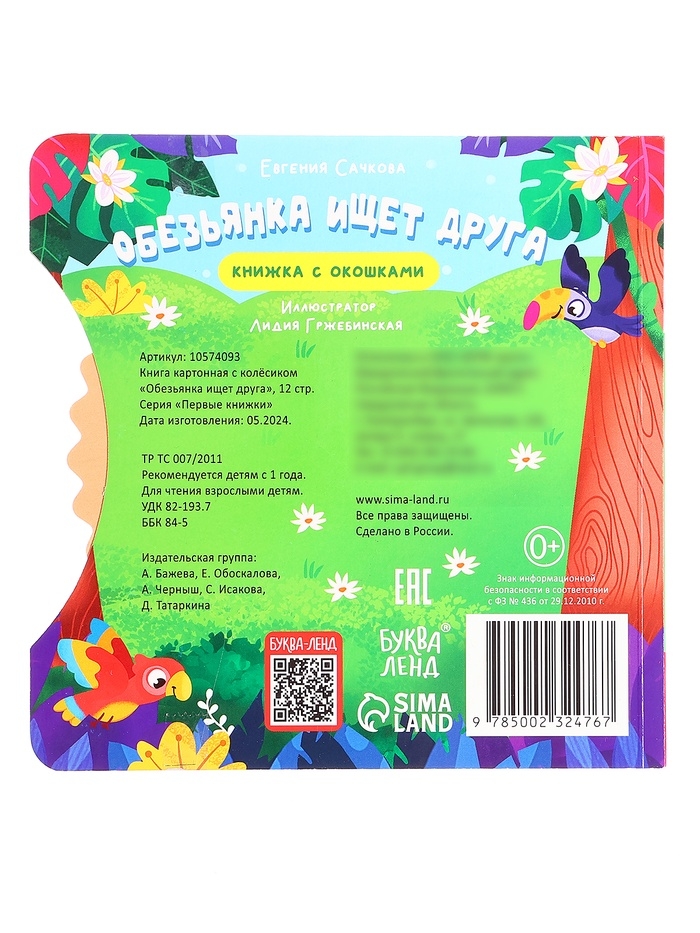 Книга картонная с колёсиком "Обезьянка ищет друга", 12 стр.