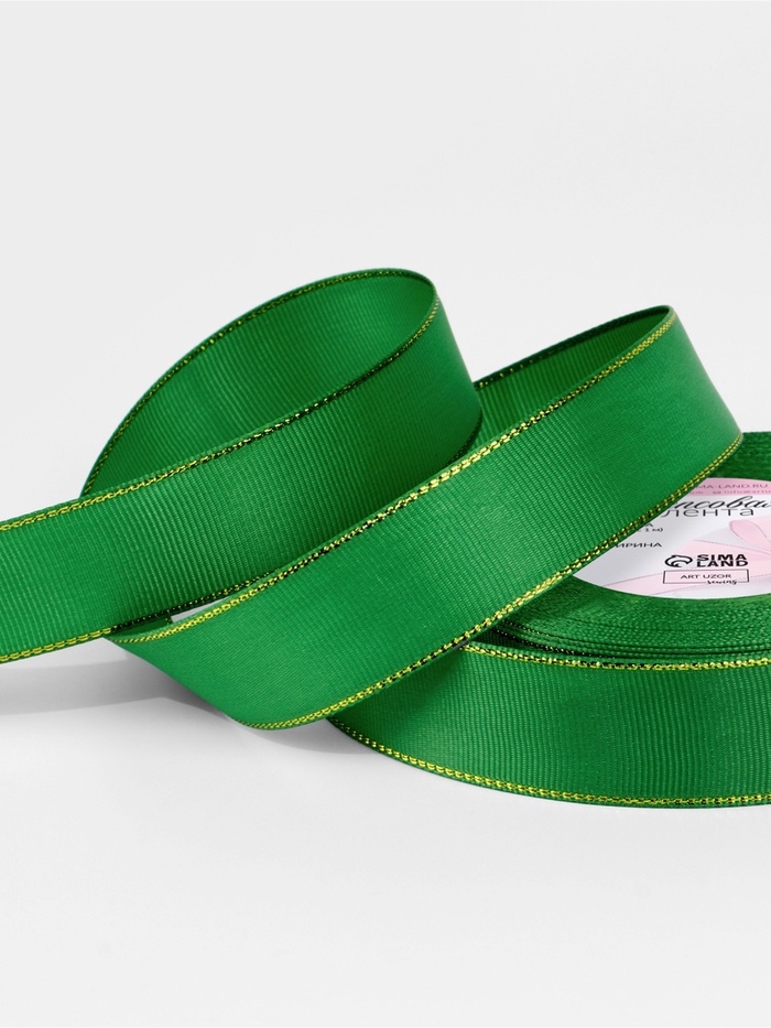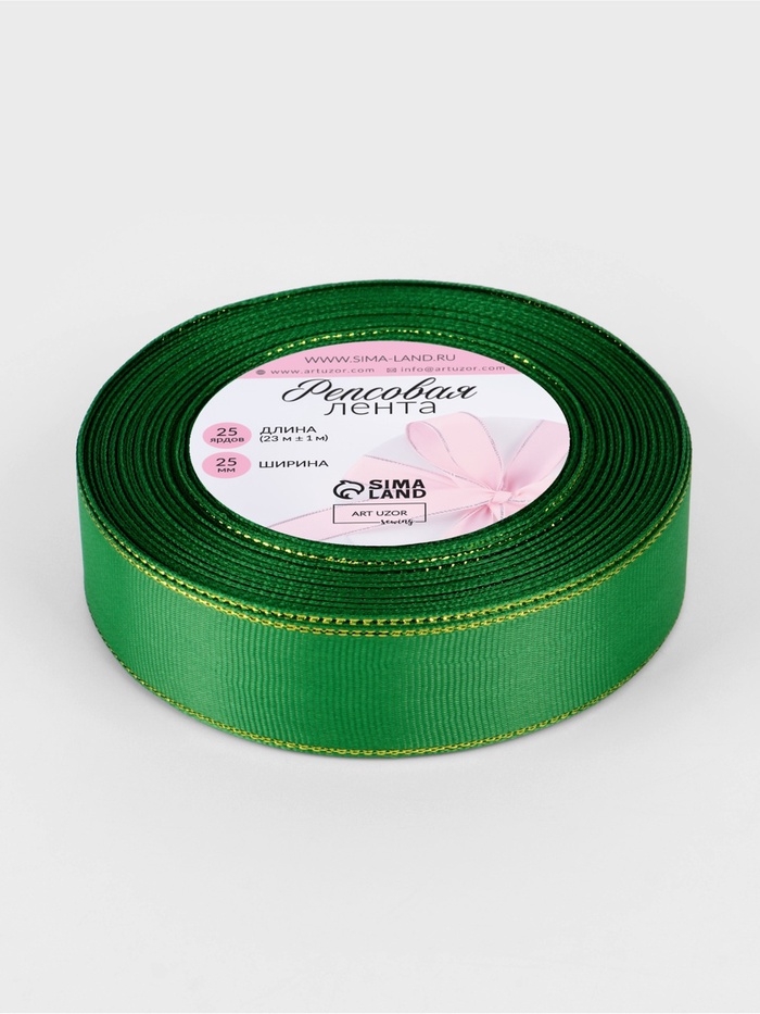 Лента репсовая 25мм*25±1ярд(23м±1м) золотые нити №019 зелёный АУ