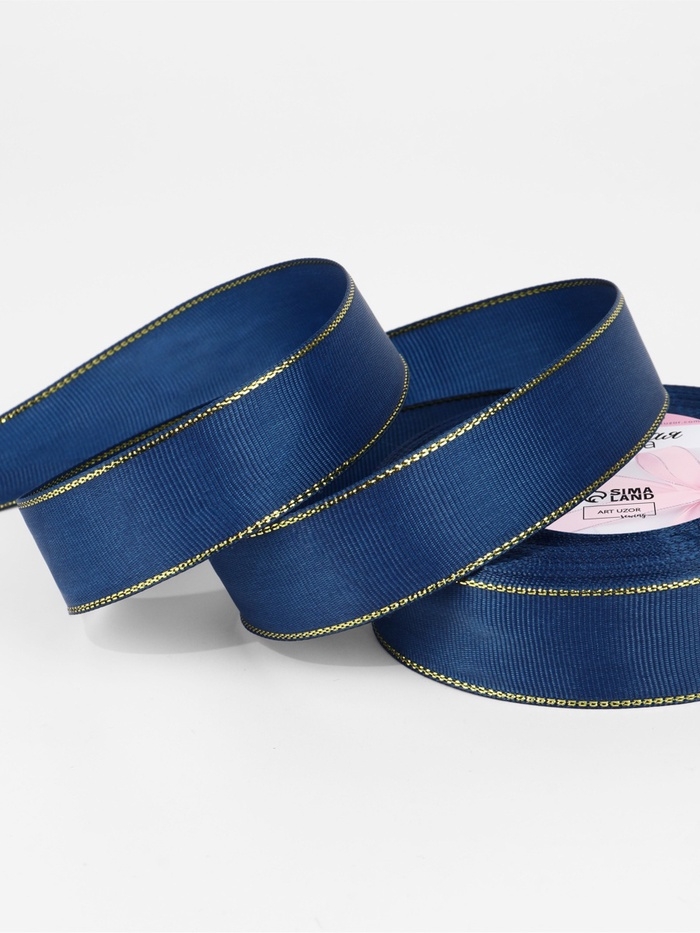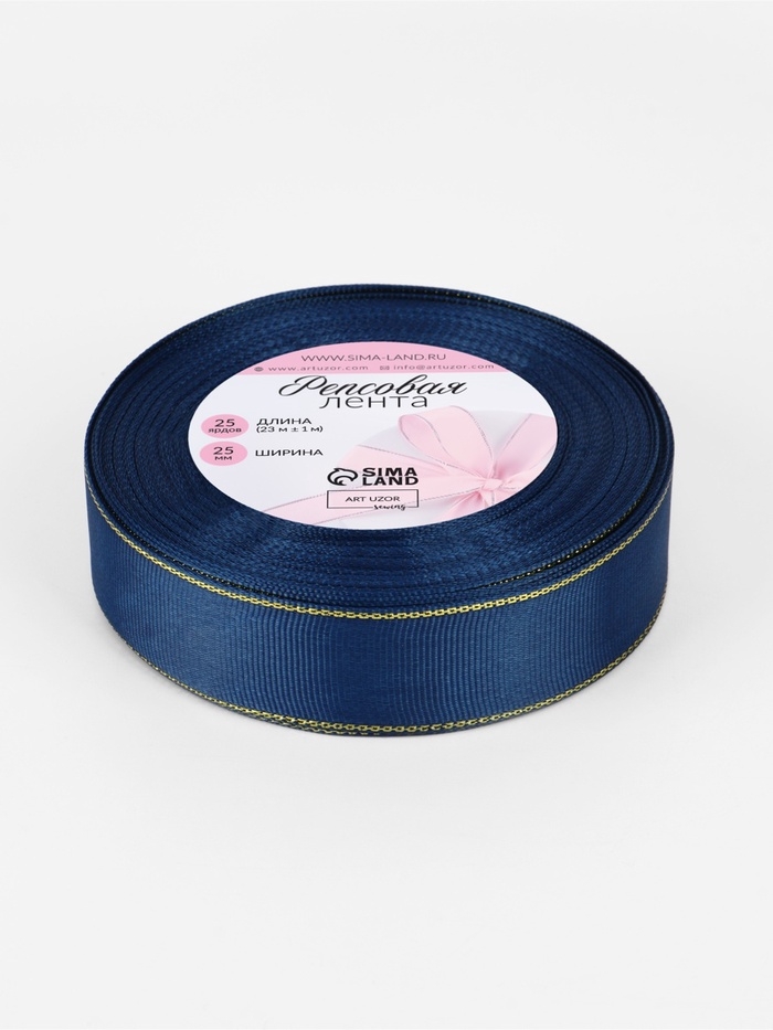 Лента репсовая 25мм*25±1ярд(23м±1м) золотые нити №038 тёмно-синий АУ