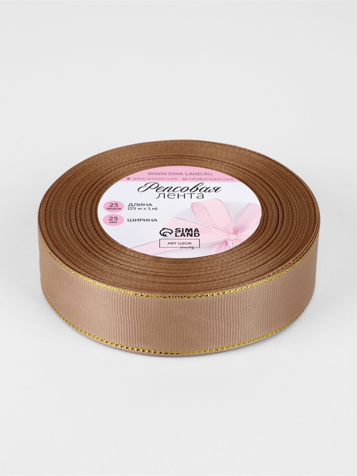 Лента репсовая 25мм*25±1ярд(23м±1м) золотые нити №173 бежевый АУ