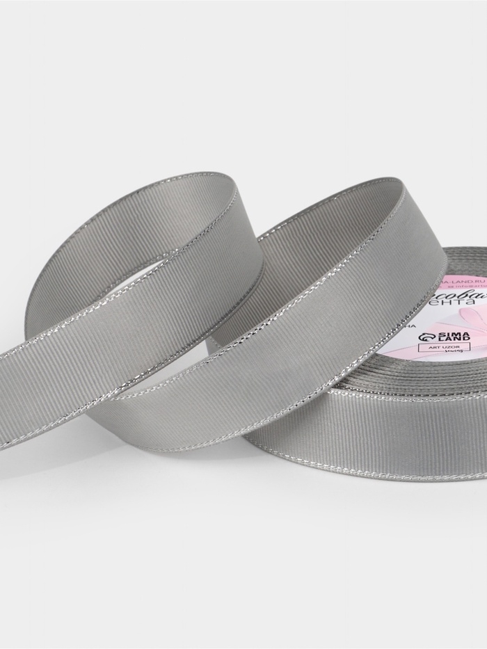 Лента репсовая 25мм*25±1ярд(23м±1м) серебряные нити №003 светло-серый АУ