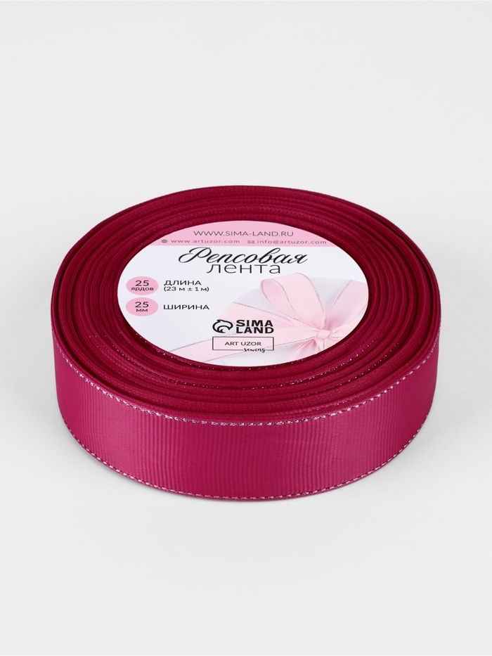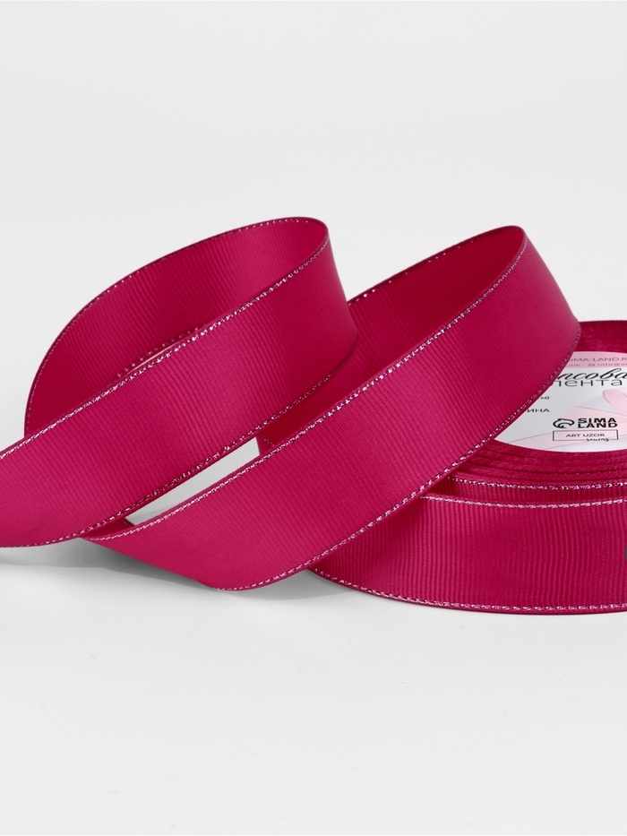Лента репсовая 25мм*25±1ярд(23м±1м) серебряные нити №028 ярко-розовый АУ