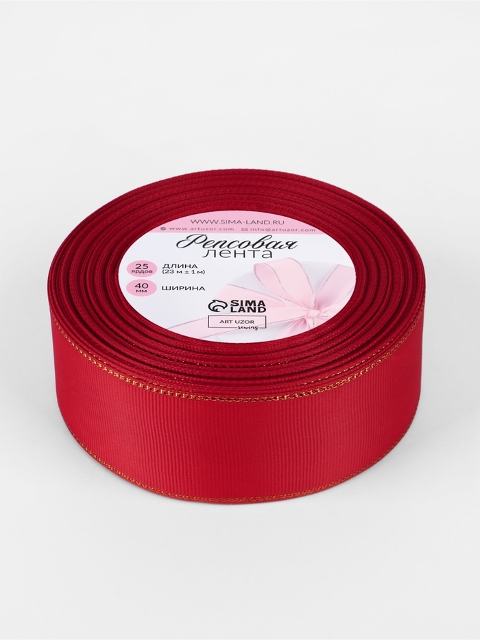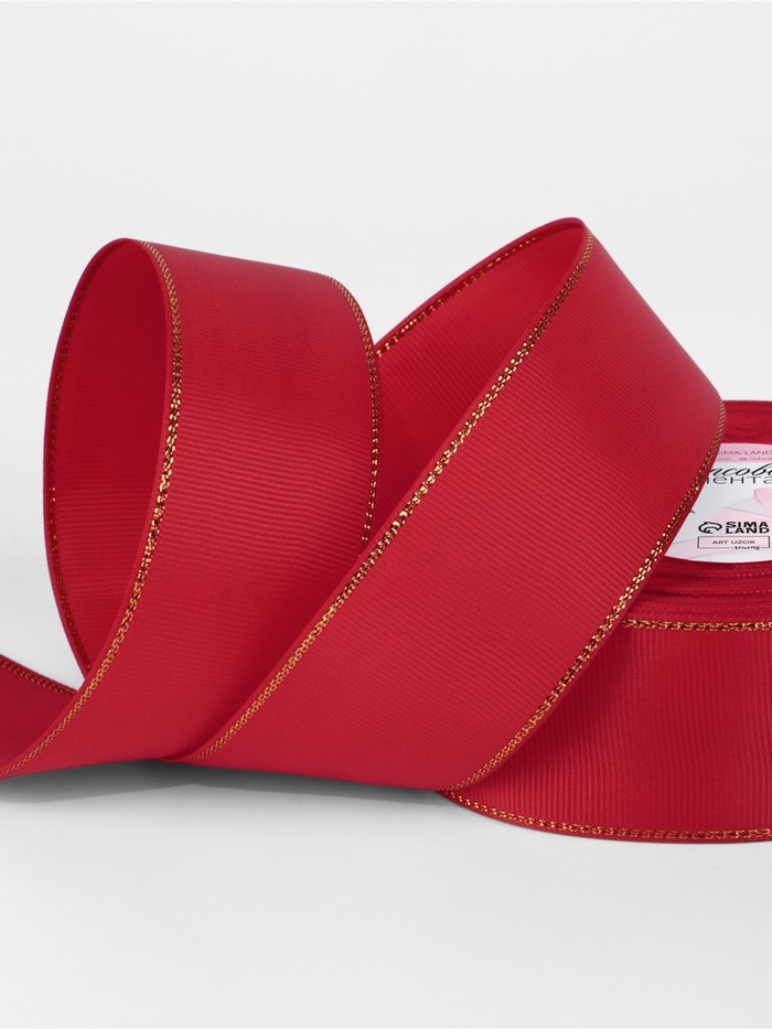 Лента репсовая 40мм*25±1ярд(23м±1м) золотые нити №026 красный АУ
