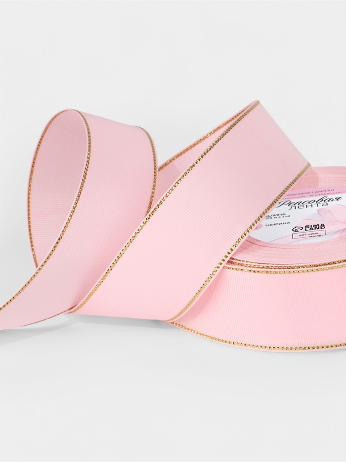 Лента репсовая 40мм*25±1ярд(23м±1м) золотые нити №004 светло-розовый АУ