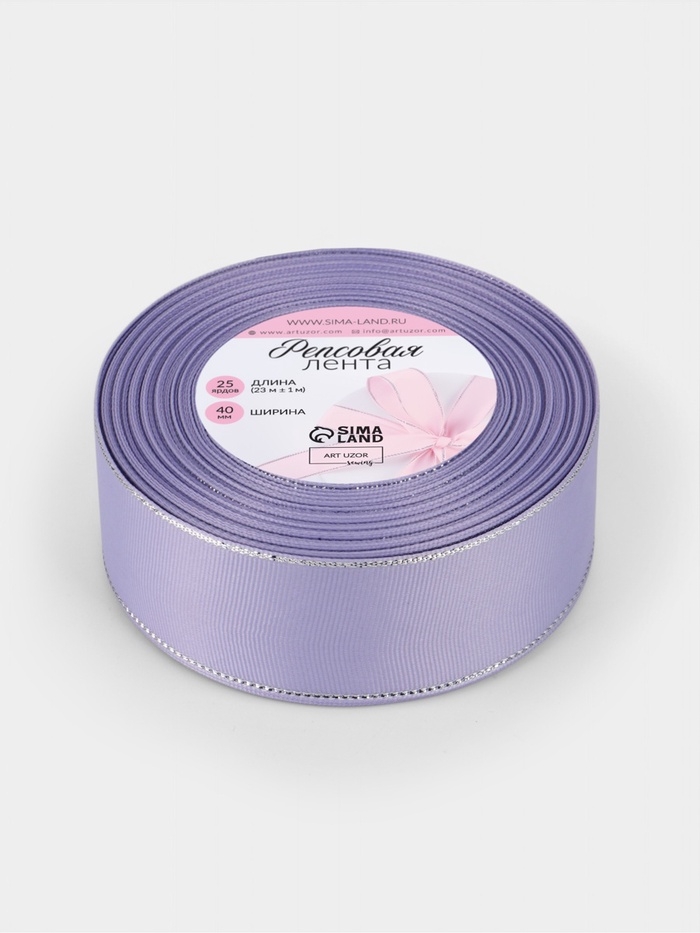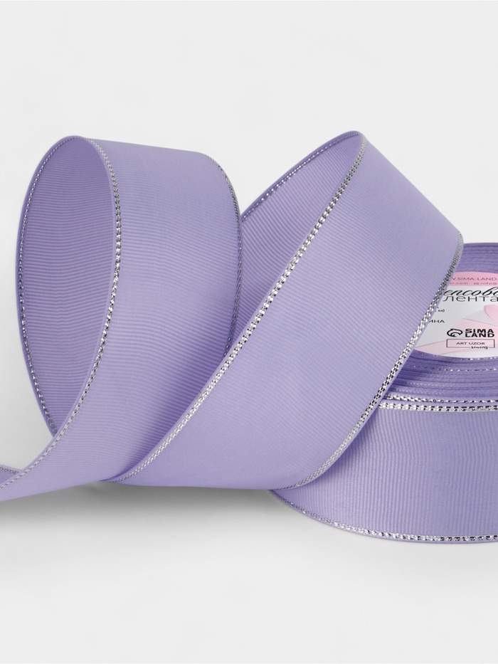 Лента репсовая 40мм*25±1ярд(23м±1м) серебряные нити №021 сиреневый АУ