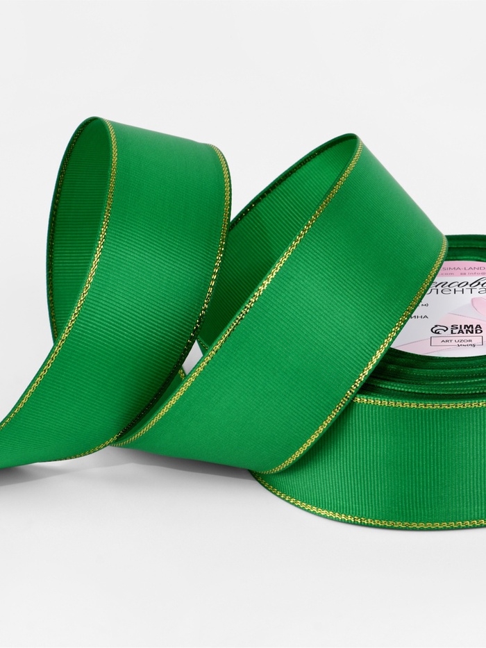 Лента репсовая 40мм*25±1ярд(23м±1м) золотые нити №019 зелёный АУ