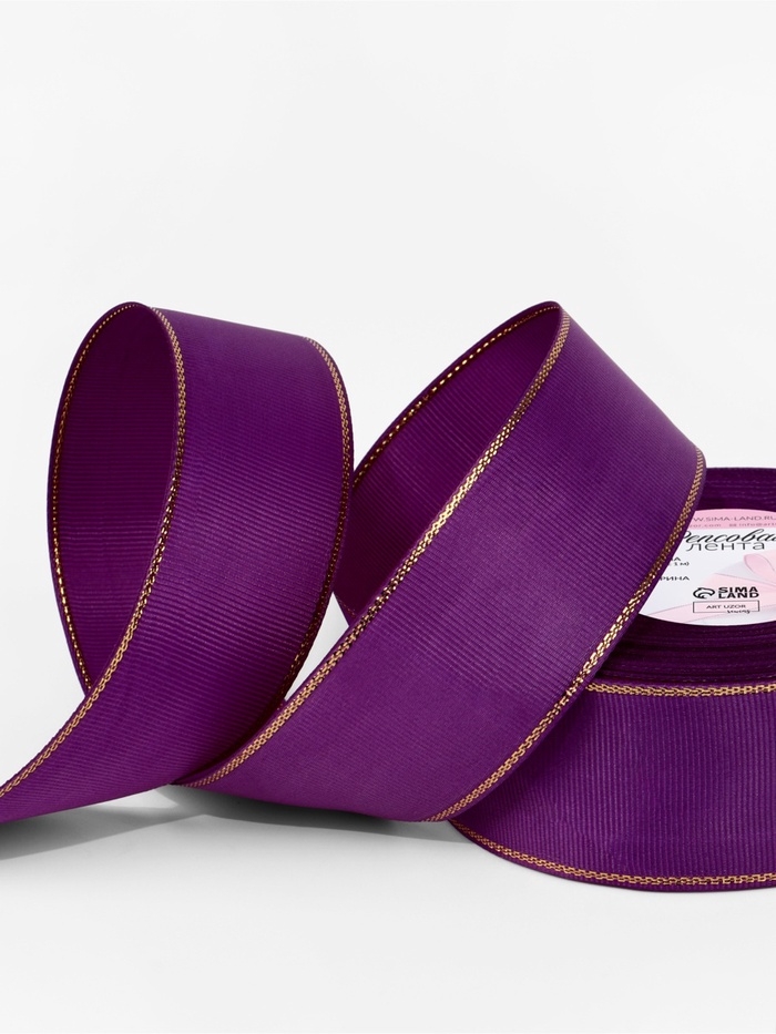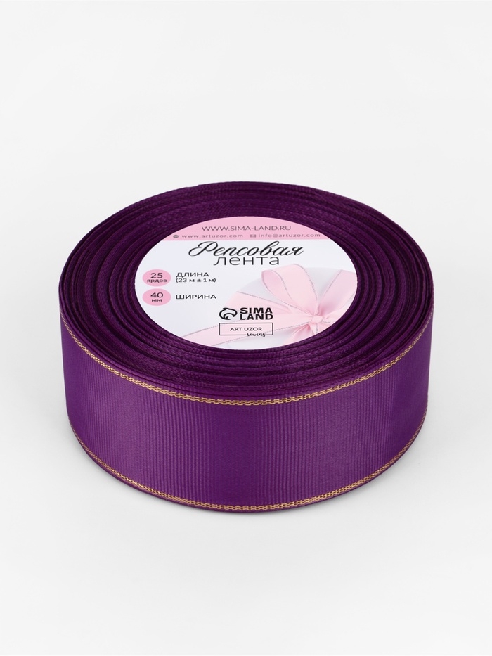 Лента репсовая 40мм*25±1ярд(23м±1м) золотые нити №046 фиолетовый АУ