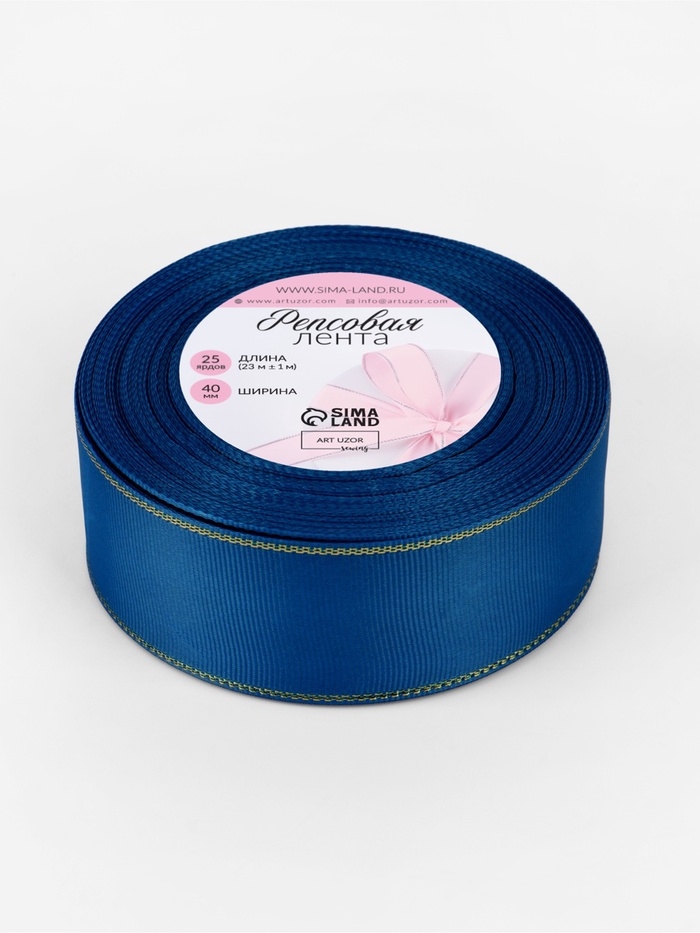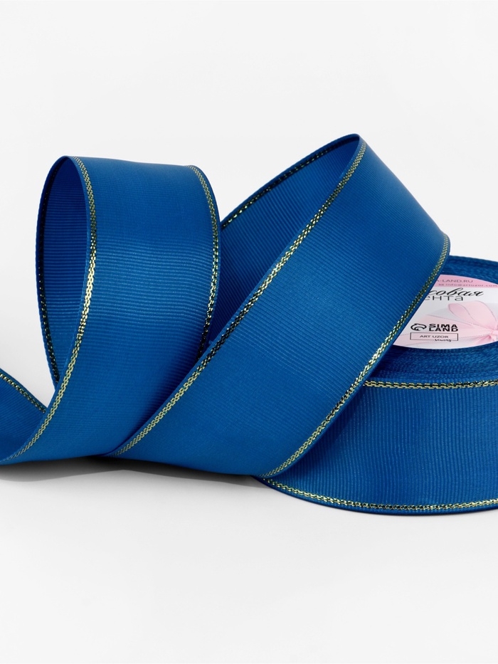 Лента репсовая 40мм*25±1ярд(23м±1м) золотые нити №040 синий АУ