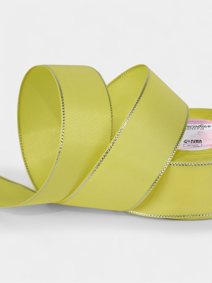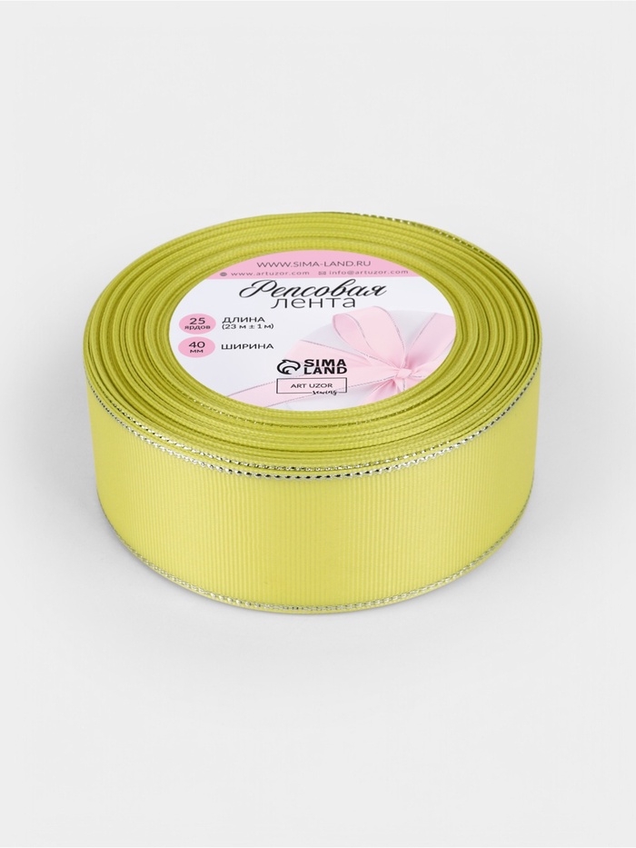 Лента репсовая 40мм*25±1ярд(23м±1м) серебряные нити №015 жёлтый АУ