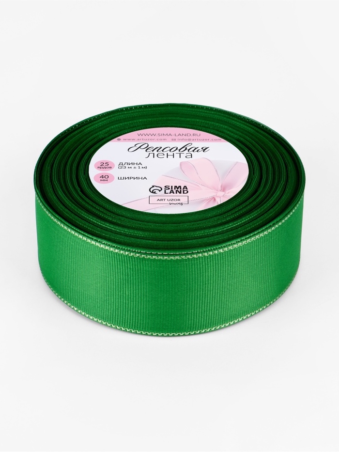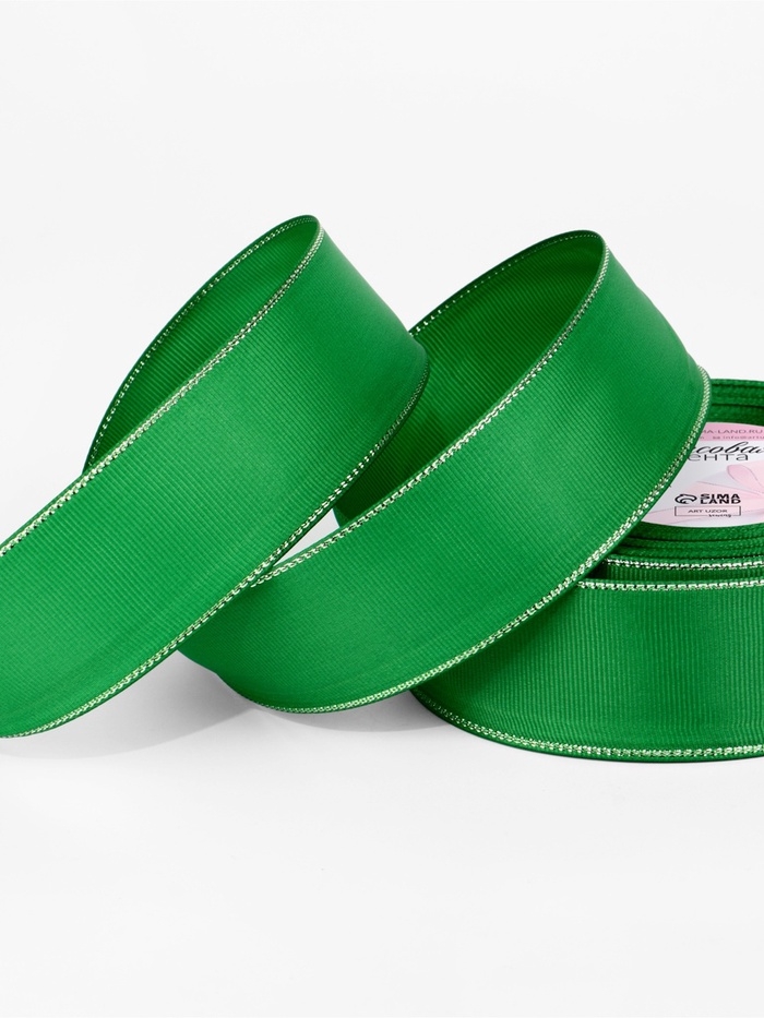 Лента репсовая 40мм*25±1ярд(23м±1м) серебряные нити №019 зелёный АУ