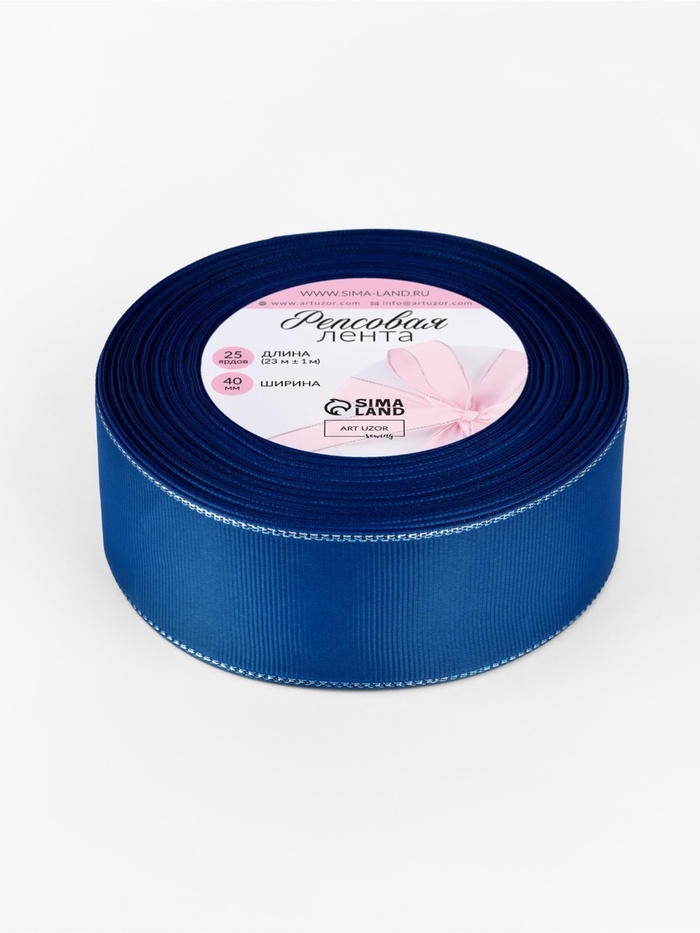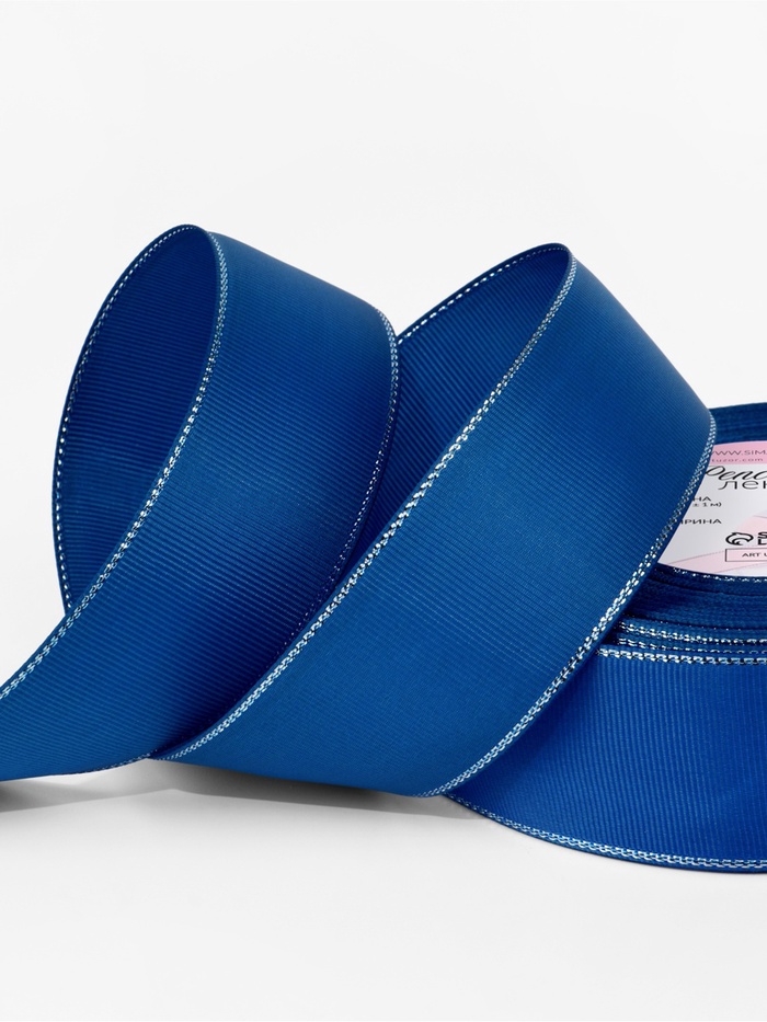 Лента репсовая 40мм*25±1ярд(23м±1м) серебряные нити №40 синий АУ