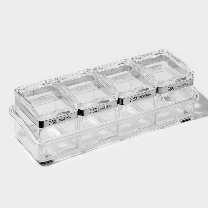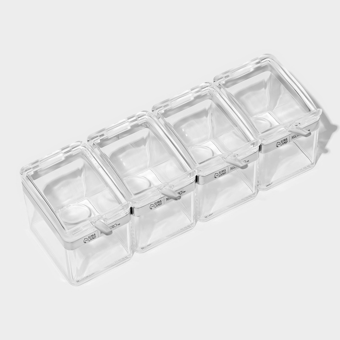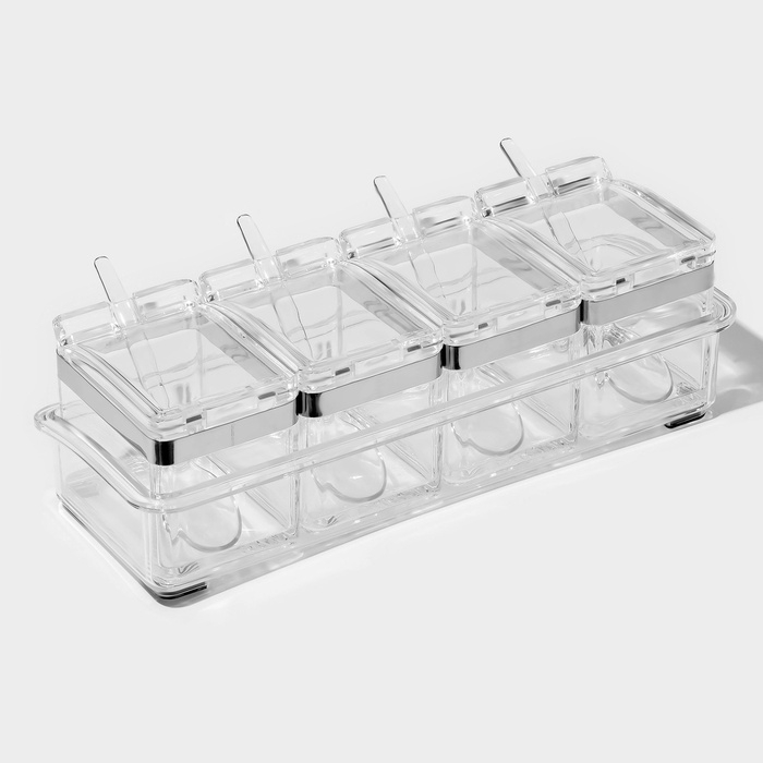 Набор для специй "Glace" 4 контейнера по 200 мл, 4 ложечки в комплекте