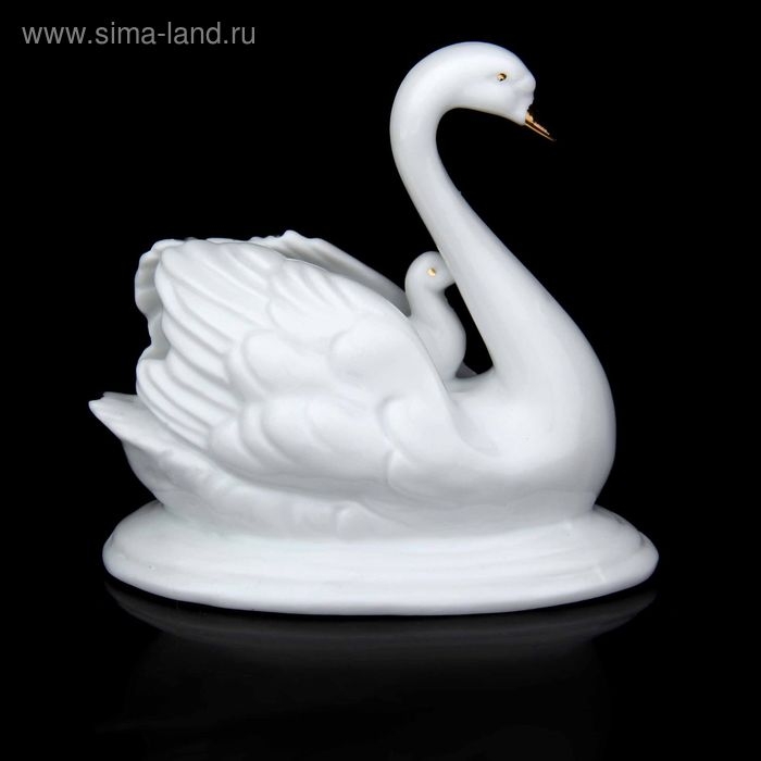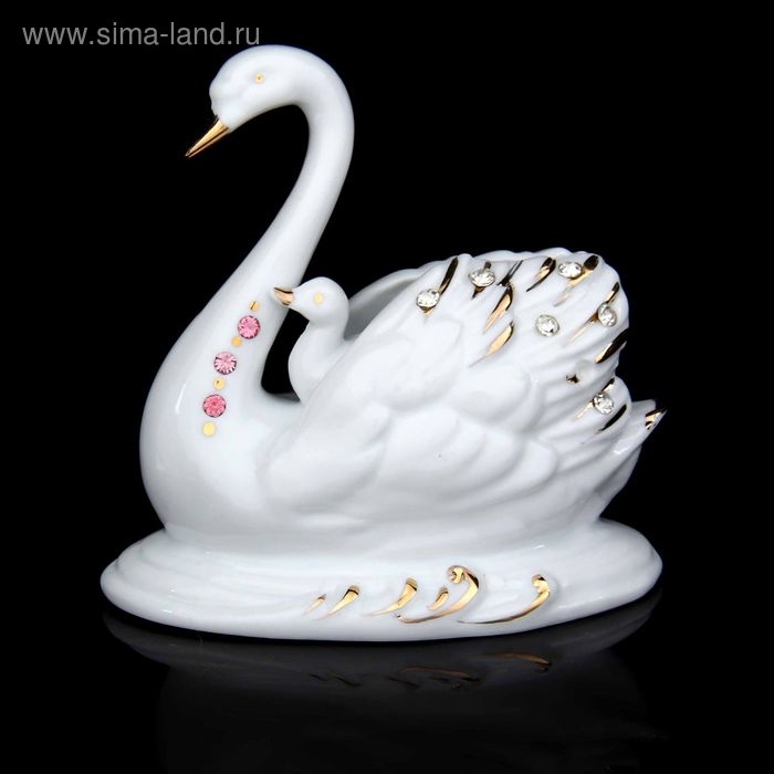 Сувенир керамика "Лебедь с малюткой" с золотом 10х10,5х6 см