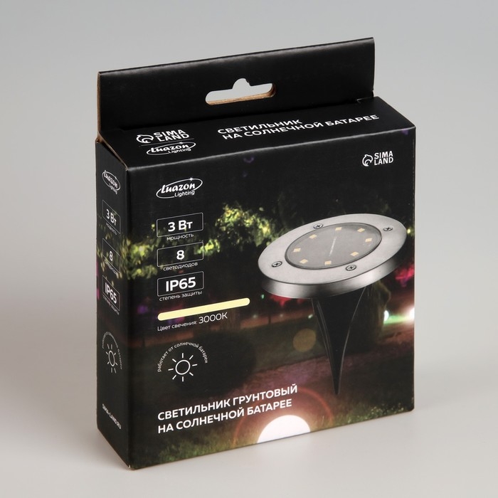 Садовый светильник на солнечной батарее, 11.5 × 13 × 11.5 см, 8 LED, свечение тёплое белое