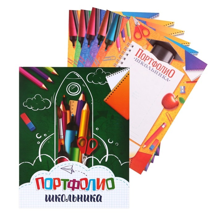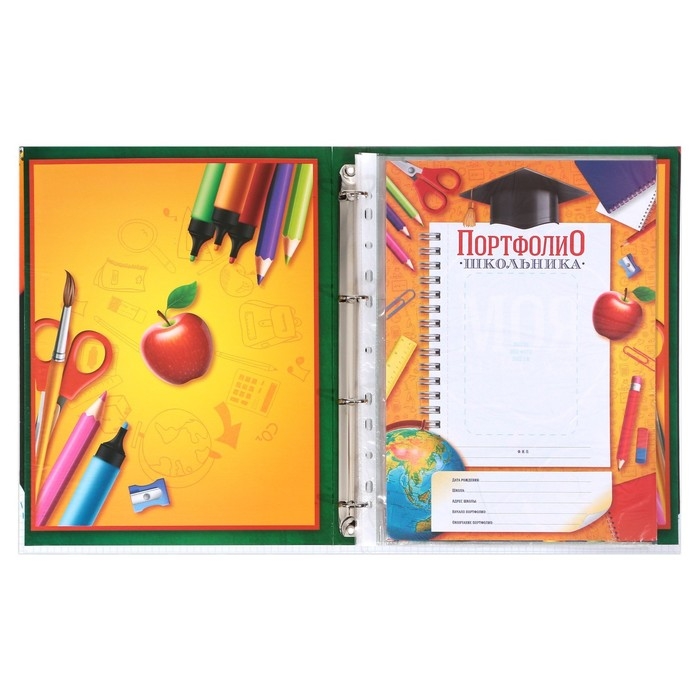 Папка школьная на кольцах «Портфолио школьника», 6 листов-разделителей, 24,5 х 32 см.