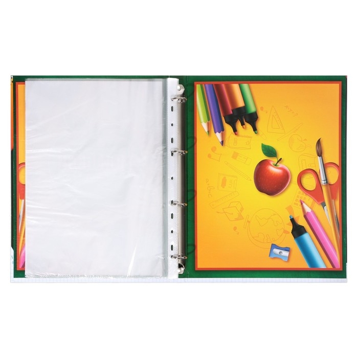 Папка-портфолио А4, Calligrata "Веселая школа", пластиковая, на 4 кольцах, для школьника, 20 файлов
