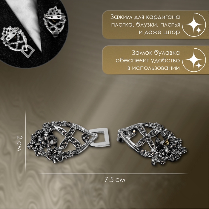 Зажим для кардигана «Эклипс», цвет серый в чернёном серебре