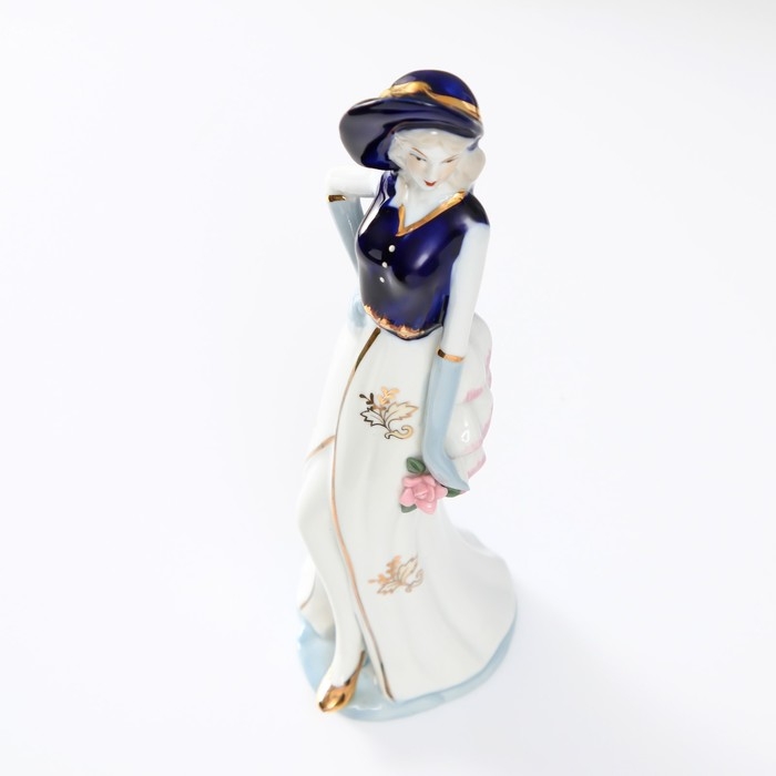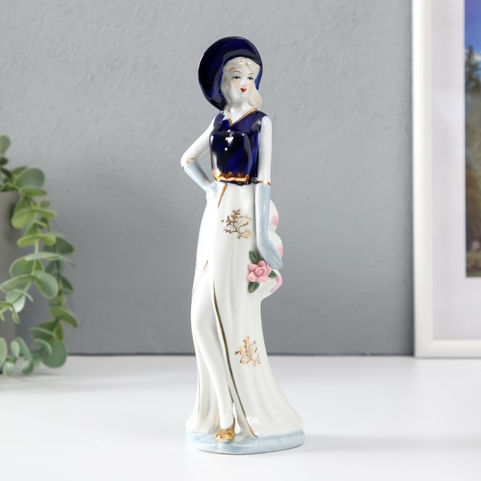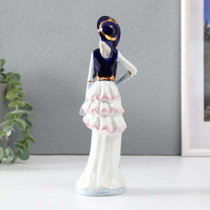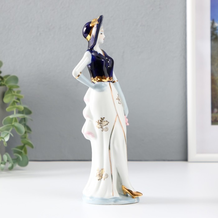 Сувенир керамика "Мадмуазель в платье с разрезом, с цветком" кобальт 22,5х6,5х7,3 см