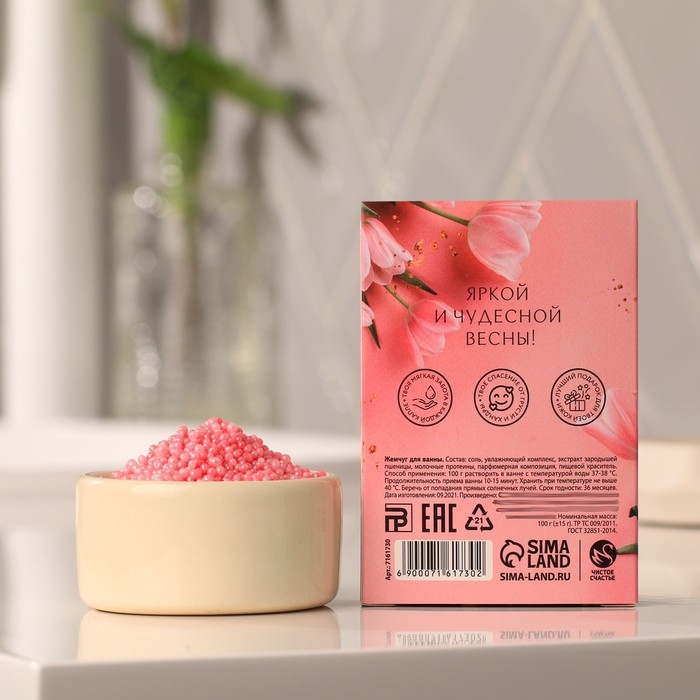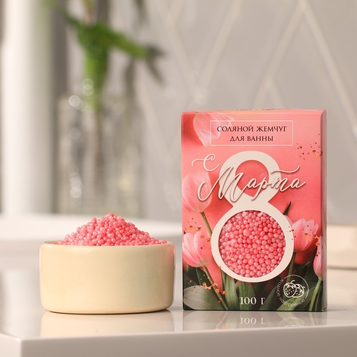 Соляной жемчуг для ванны 100 г «С 8 марта!», ягодный аромат, ЧИСТОЕ СЧАСТЬЕ