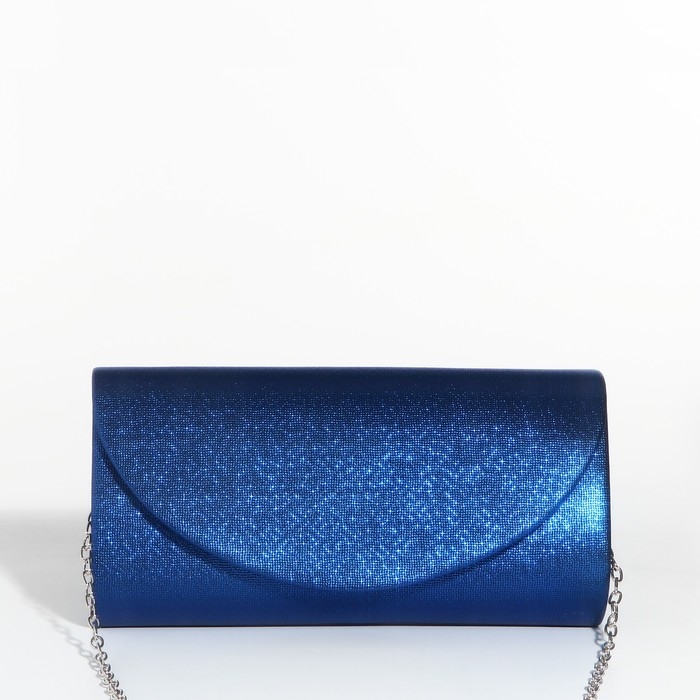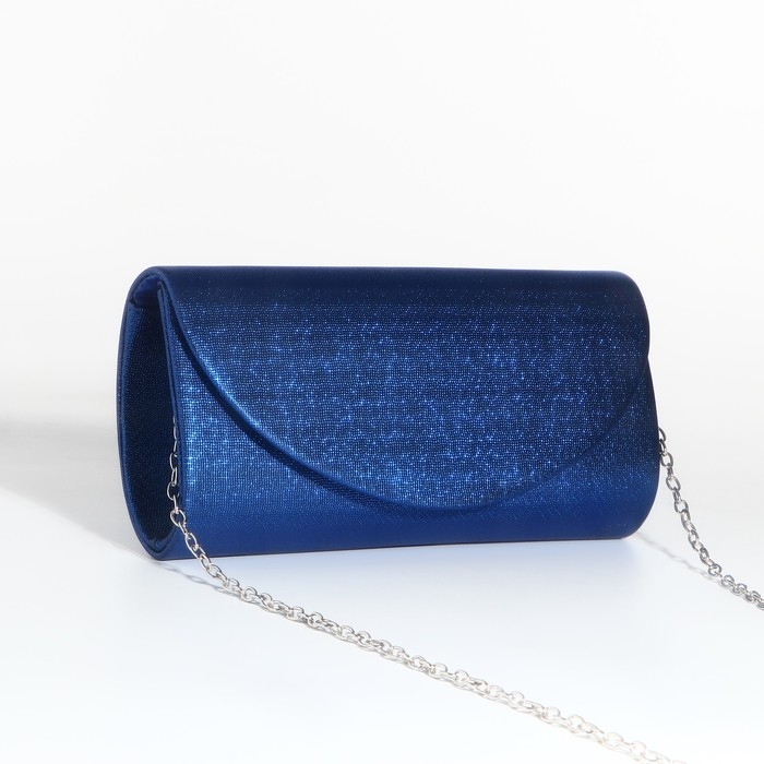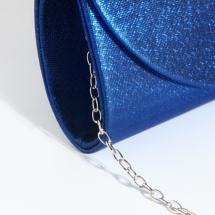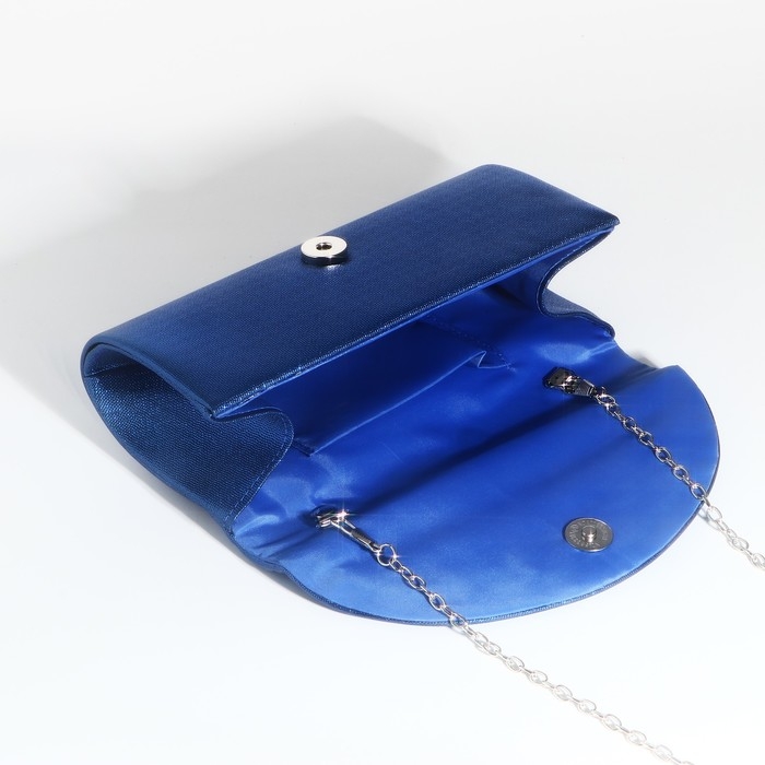 Сумка-клатч на магните, длинная цепь, цвет синий