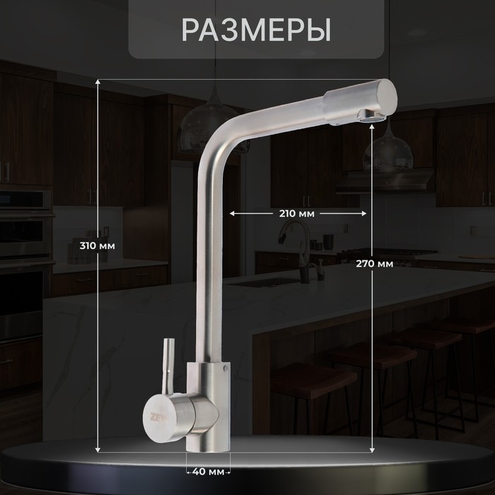 Смеситель для кухни ZEIN Z2939, однорычажный, картридж керамика 35 мм, нерж. сталь, сатин