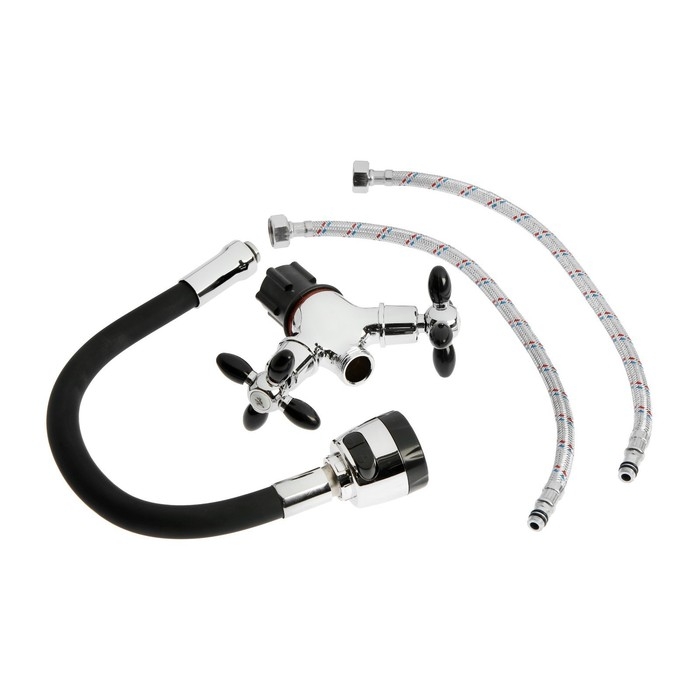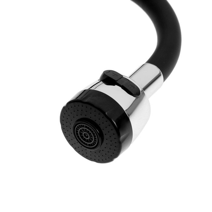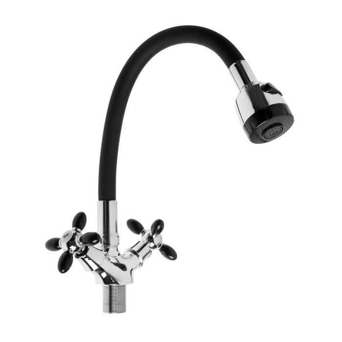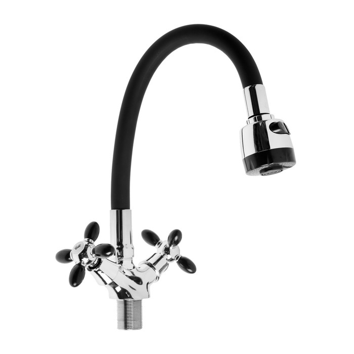 Смеситель для кухни ZEIN ZC2028, гибкий силикон излив, кран-букса латунь 1/2", черный/хром
