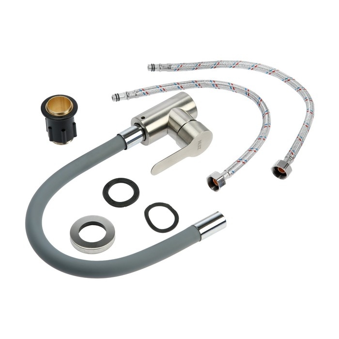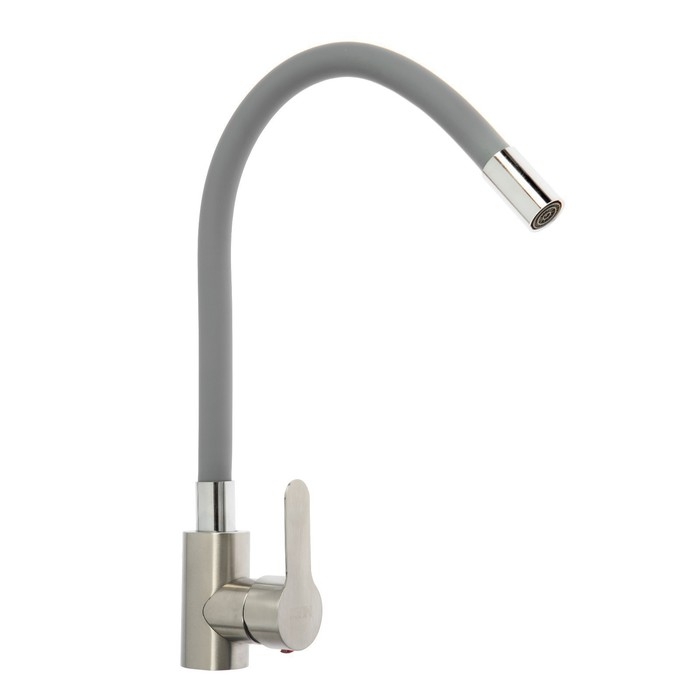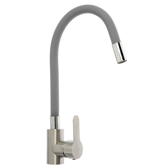 Смеситель для кухни ZEIN Z2753, гибкий излив, картридж 35 мм, нерж. сталь, серый/сатин