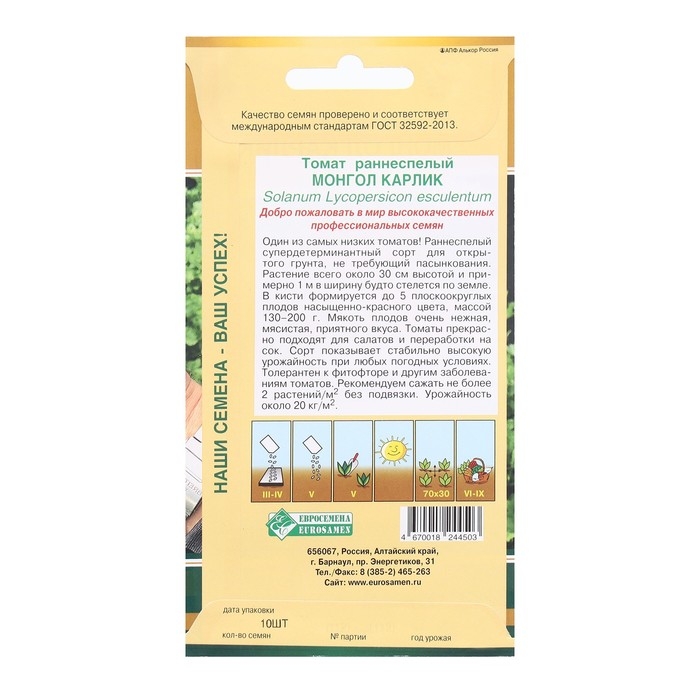 Семена Томат раннеспелый Монгол Карлик, супердетерминантный 10 шт