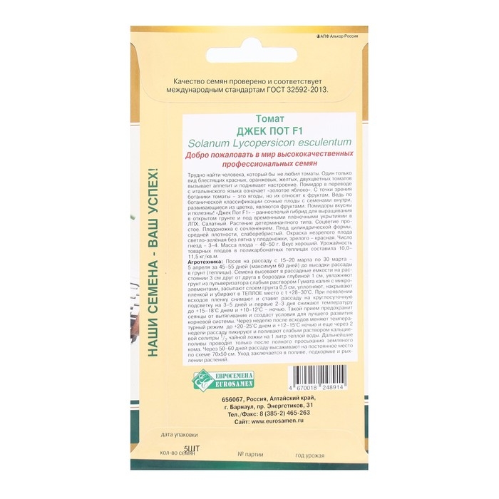 Семена Томат Джек Пот F1, детерминантный, 5 шт