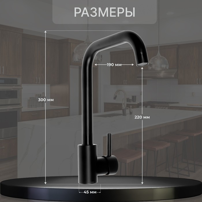 Смеситель для кухни ZEIN Z2506, высокий излив, картридж керамика 40 мм, нерж. сталь, черный