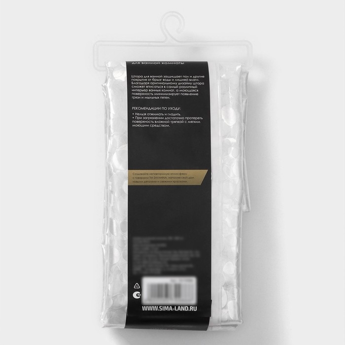 Штора для ванной SAVANNA «Галька», 180×200 см, PEVA, цвет белый
