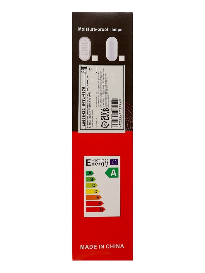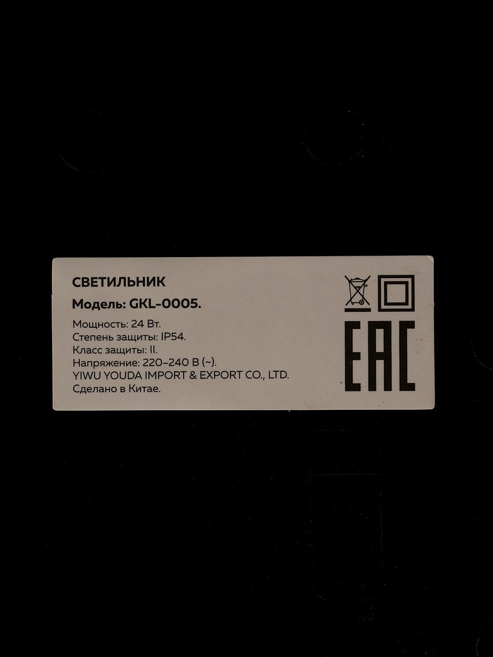 Светильник светодиодный, 24 Вт, IP54, 4000К, 220 В, овал, черный