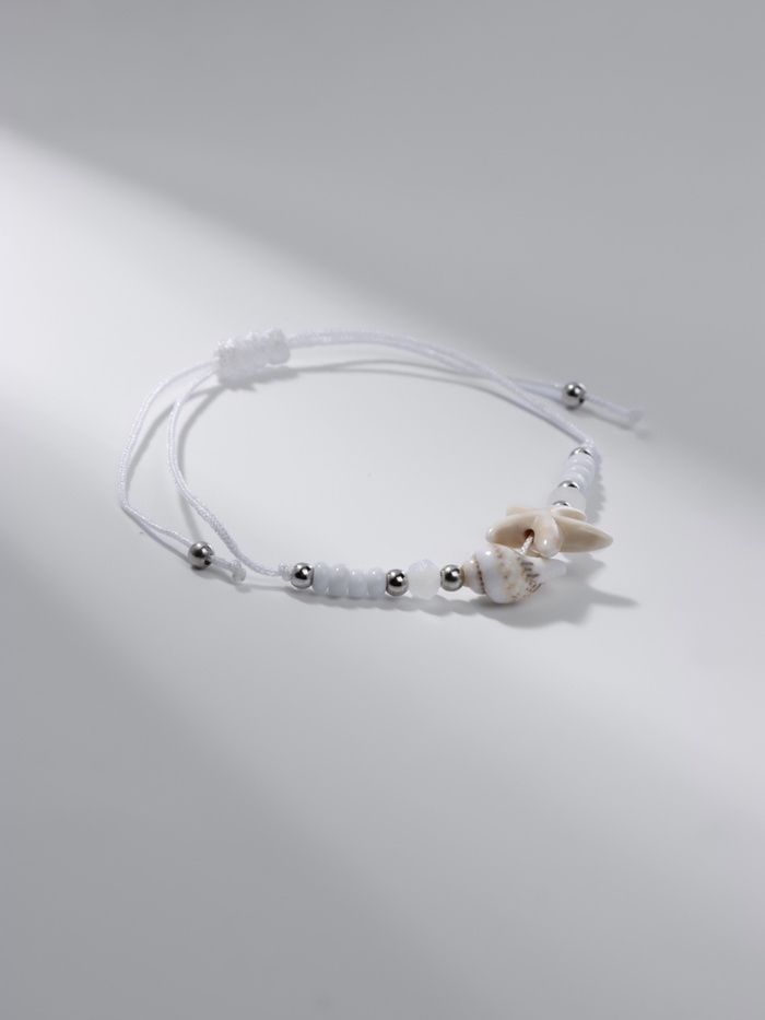Браслет ассорти на нити «Ракушка» звезда морская, цвет бежевый в серебре
