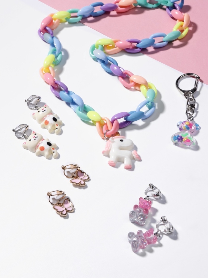 Набор "Выбражулька" 6 пр.: цепочка единорог. 3 пары клипс кот, мишки, бабочки, брелок мишка 108411