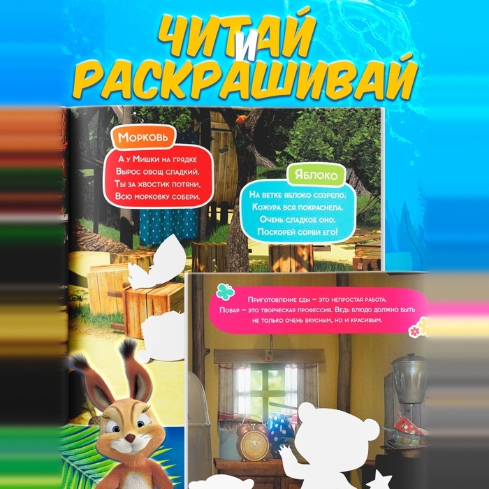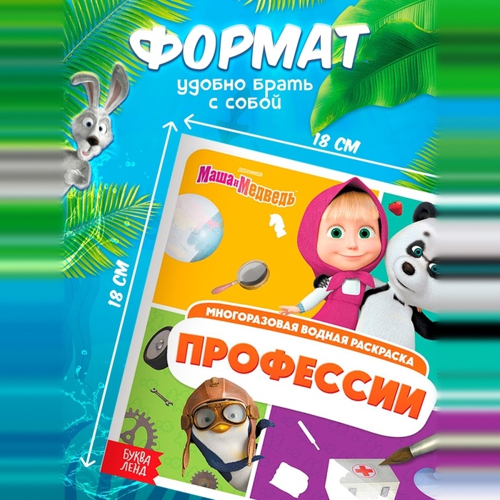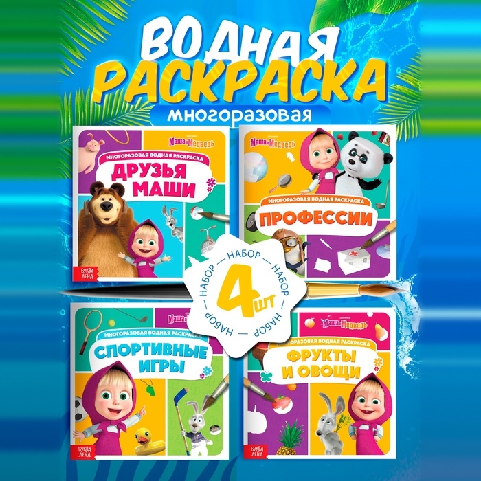 Набор многоразовых водных раскрасок, 4 шт по 10 стр., Маша и Медведь