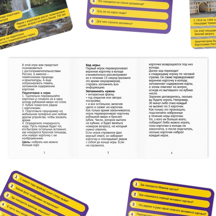 Настольная игра-викторина «Коробочка знаний. Достопримечательности России», 50 карт, кубик, 7+