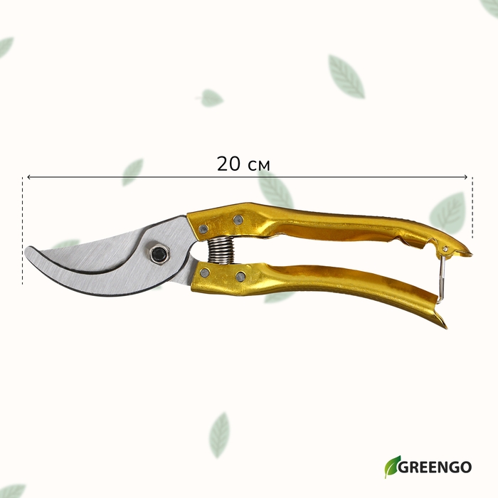 Секатор плоскостной, 8" (20 см), с металлическими ручками, с запасной пружиной, Greengo