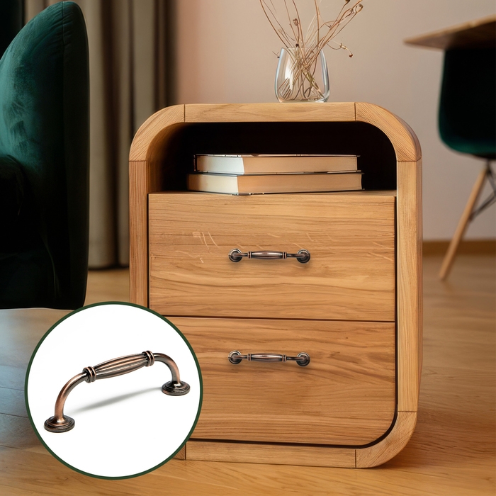 Интересный дизайн ручки сочетается с различными типами мебельного гарнитура. Фурнитура имеет привлекательный внешний вид и компактный размер. Медный оттенок идеально подходит к мебельным фасадам в различной цветовой гамме.