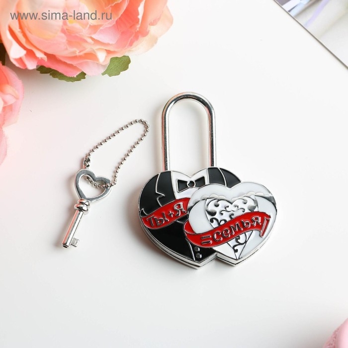 Замок свадебный с ключом « Ты и Я = СЕМЬЯ».