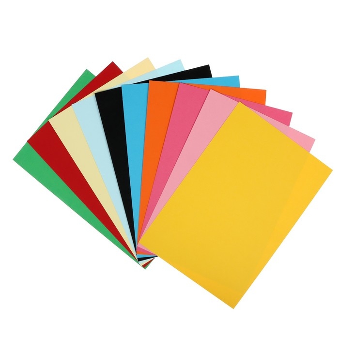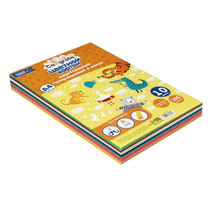 Картон цветной двусторонний А4, тонированный в массе, 100 листов, 10 цветов, 220 г/м2