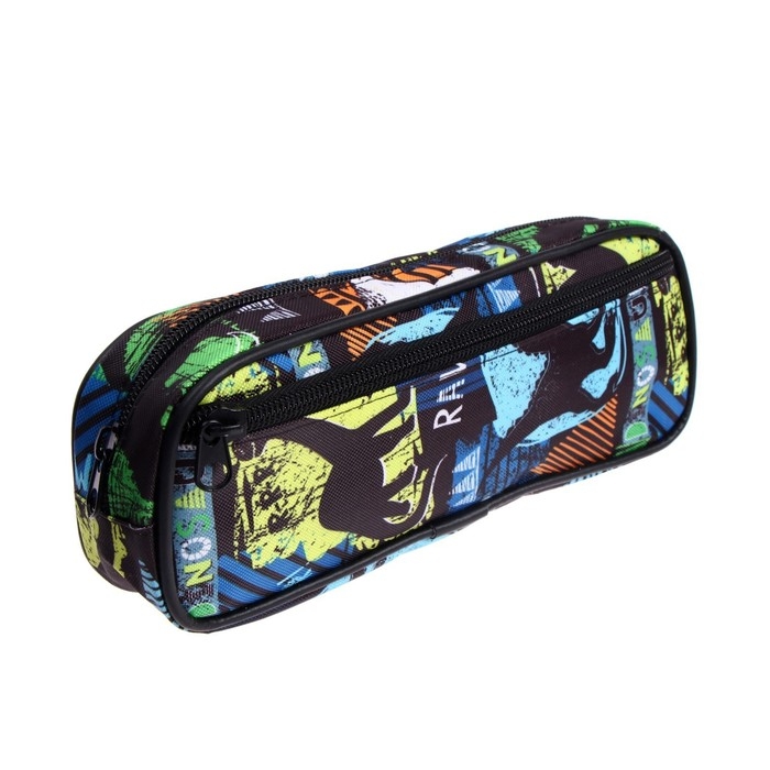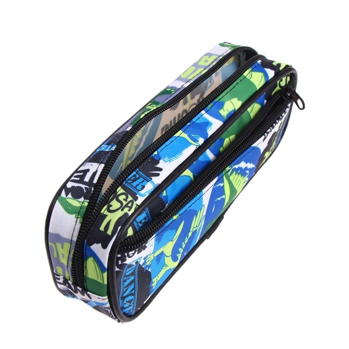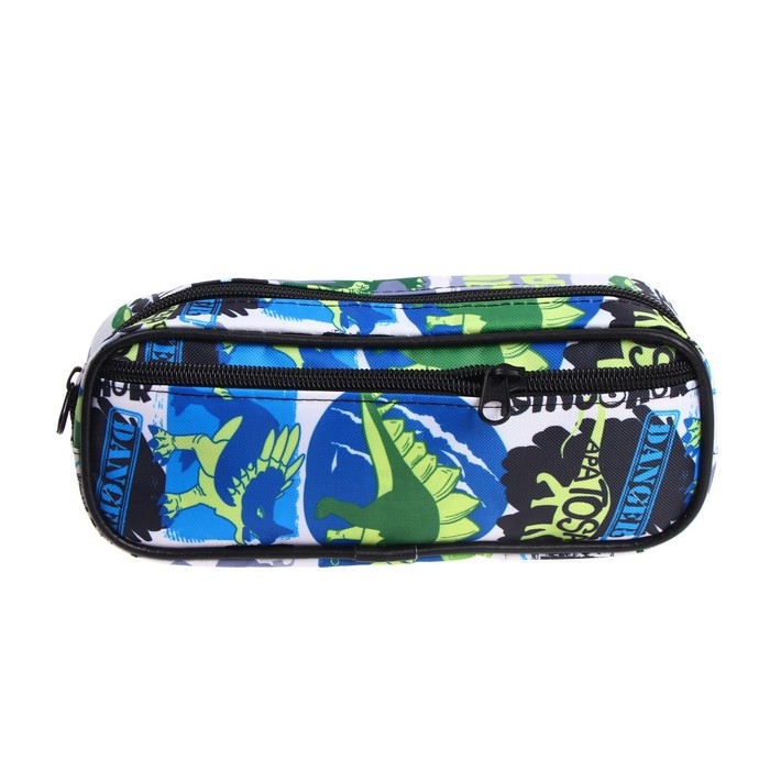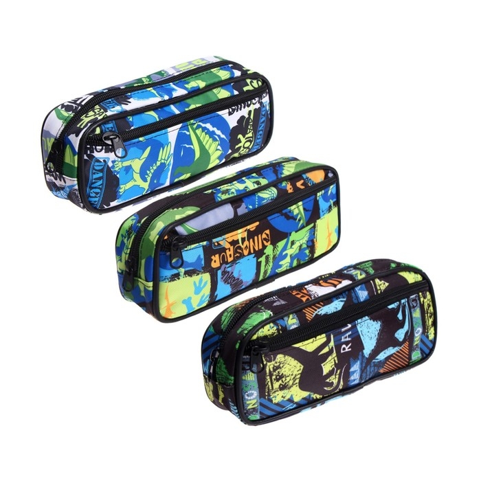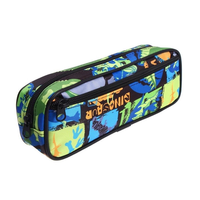 Пенал школьный на молнии "Динозавры", 2 отделения, МИКС