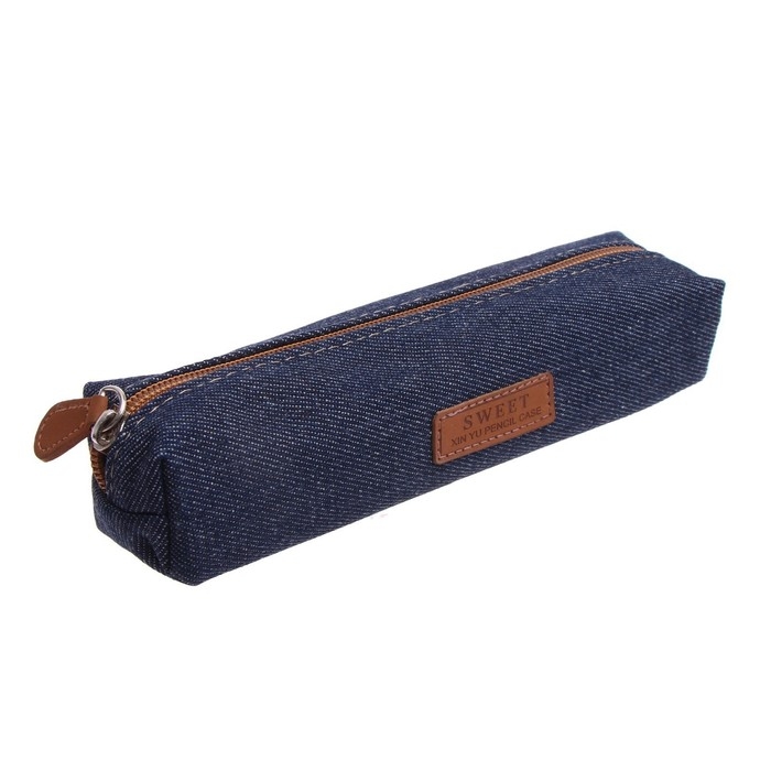 Пенал школьный на молнии "Джинс", МИКС
