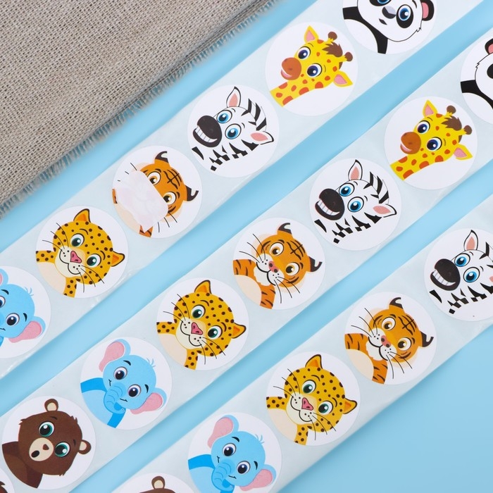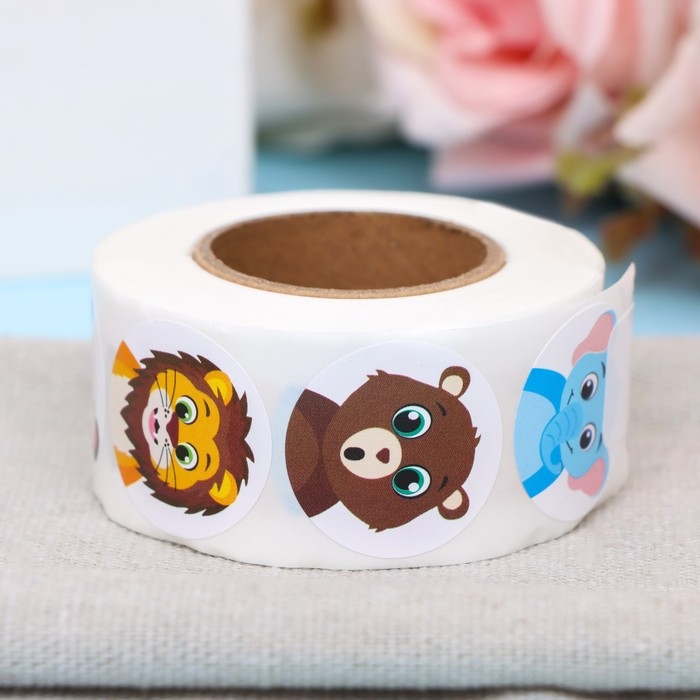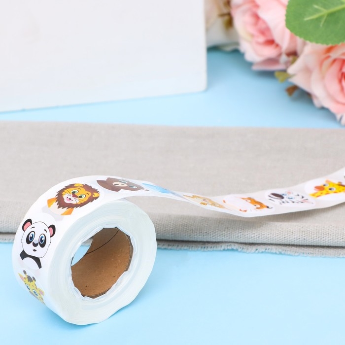 Наклейки в рулоне "Зверюшки",500 шт,2,5 х 2,5 см